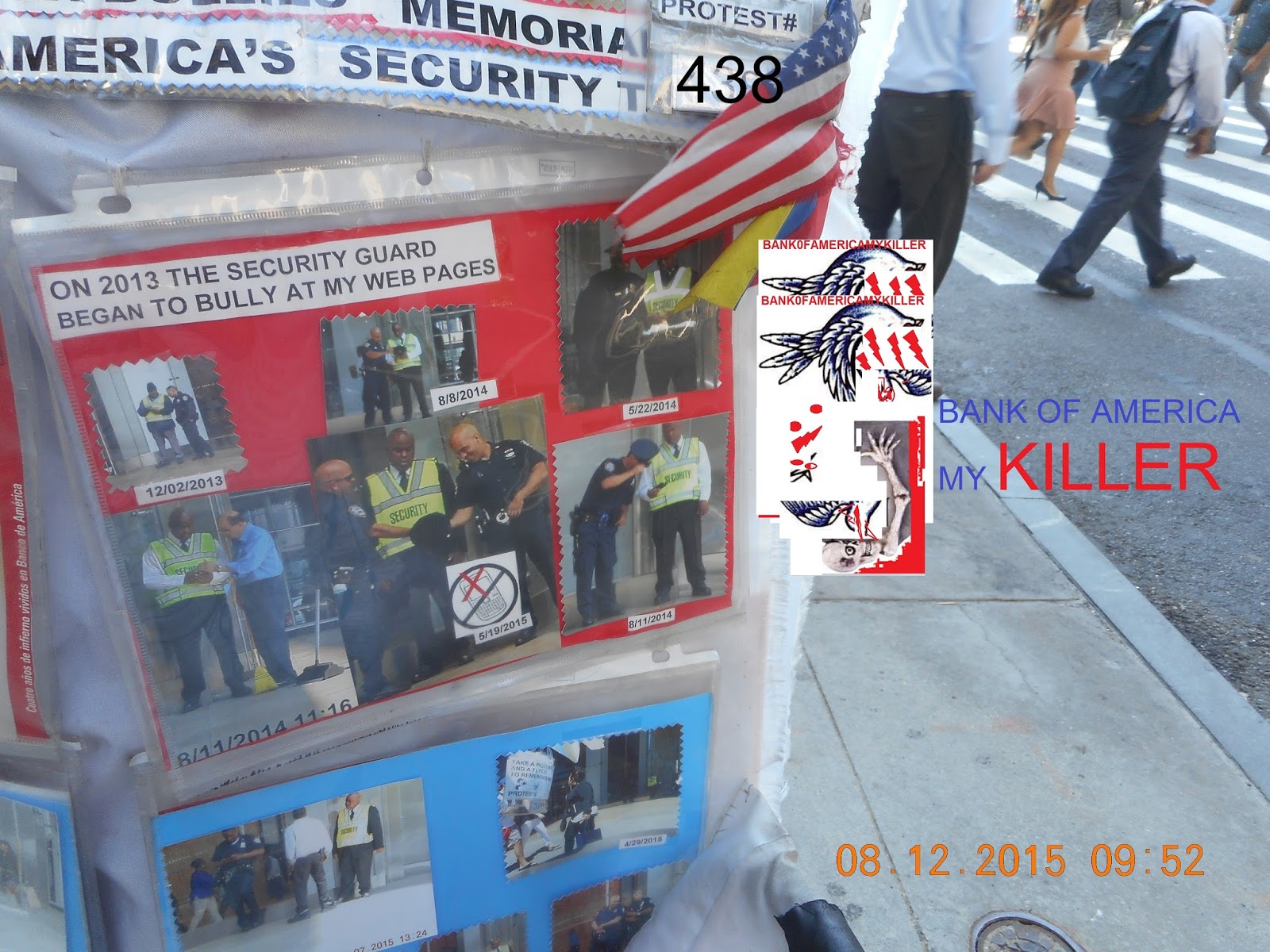 PROTEST #447…THE ENTIRE MORNING I WAS OBSERVING BANK OF AMERICA’S SECURITY TEAM TURNING THEIR DUTIES INTO DESPICABLE ACTIONS SUCH AS MAKING FUN AT WOMEN’S BUTTS AND CYBER BULLYING ME